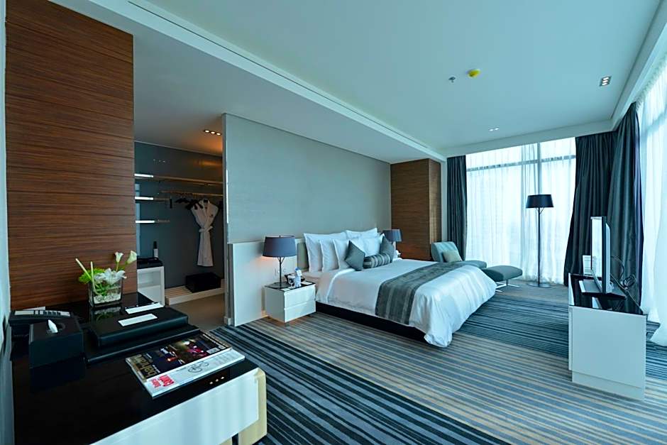 This air-conditioned suite offers a master bedroom with king bed and other bedroom with two single beds .Offering free Wi-Fi, this extra spacious, air-conditioned suite is furnished with a modern design. It includes a mini-bar, tea/coffee making facilities, dining area and living room with a flat-screen satellite TV. The private bathroom is fitted with a bath, walk-in shower and free toiletries .